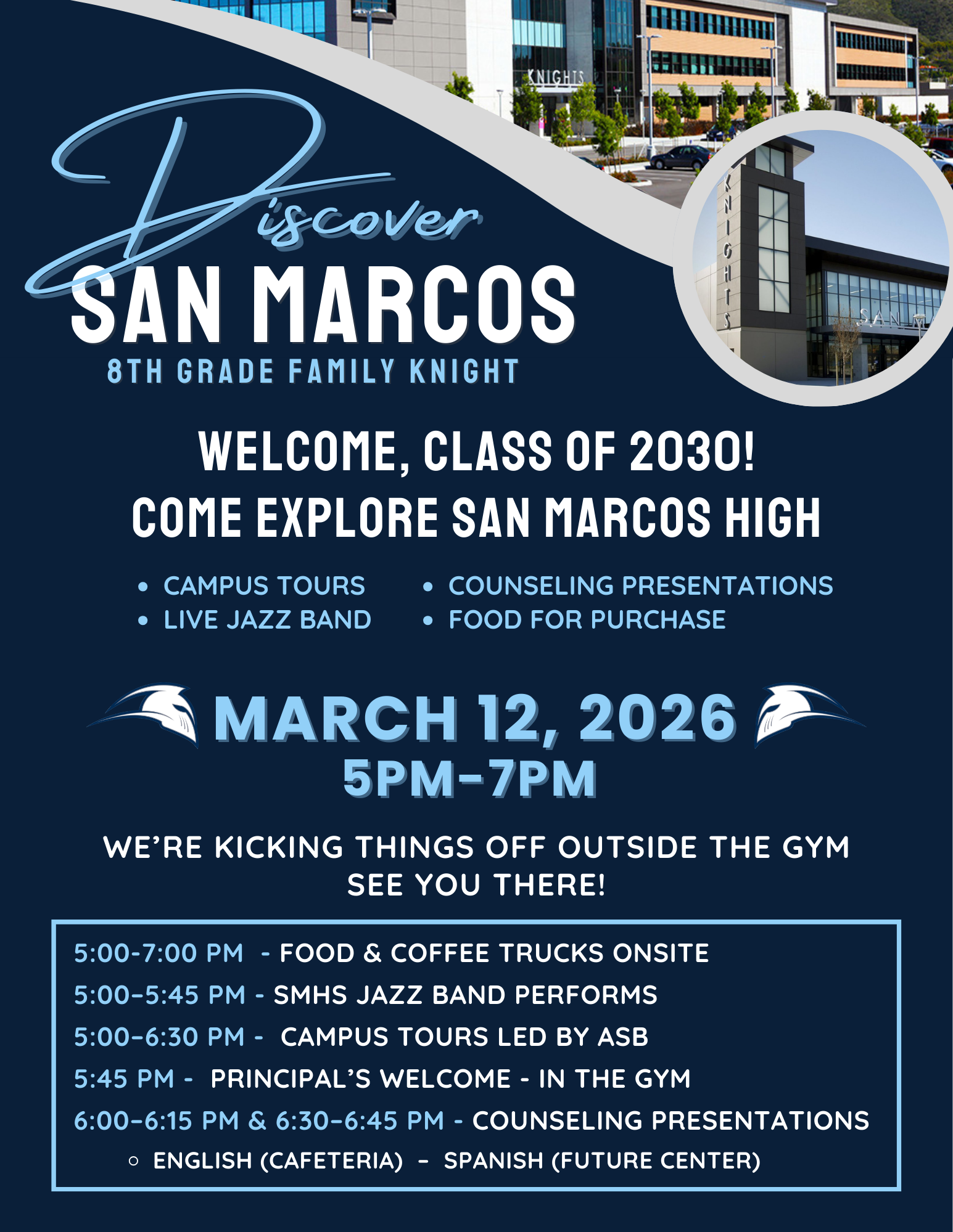 📢 Join Us for Discover San Marcos High School! 8th Grade Family Knight!